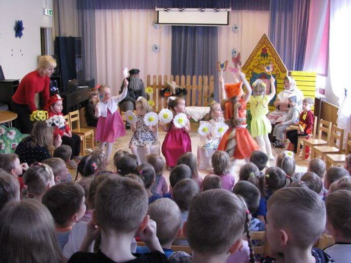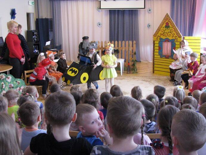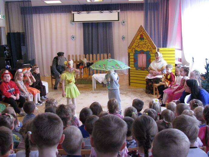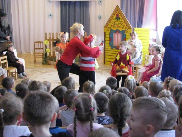 Театр – всегда праздник. С ним связаны радость, веселье, яркие впечатления, новые чувства. Он развивает воображение и фантазию, способствует творческому развитию ребенка, помогает раскрепоститься, развивает речь и эмоциональную сферу. А как интересно быть не только зрителем, но и участником спектакля! Первый день театрального месяца открылся театрализованным представлением «Колобок на новый лад», которое показали дети и учителя из групп Теремок и Золотой петушок. Они с удовольствием перевоплотились в героев любимой сказки, сопровождая свое выступление песнями, музыкой и танцами. Для многих из них это было первым публичным выступлением. Зрители встречали артистов улыбками, хорошим настроением и аплодисментами, а в конце в знак благодарности – вручили корзину конфет.