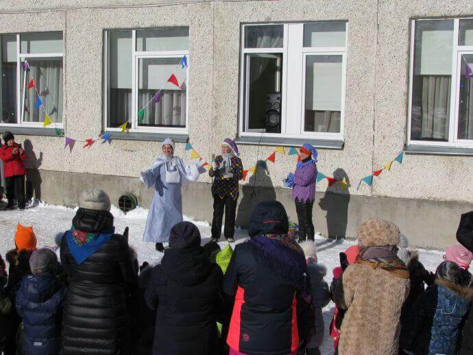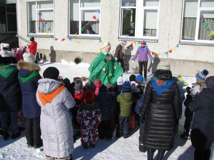 С веселыми закличками, частушками и танцами встречали сегодня, 06.03.2019, Масленицу. Создать атмосферу гуляния помогли несложные аксессуары: расписные платки и хорошее настроение детей и взрослых. К нам на Масленицу заглянули Зима, красавица Весна, веселые скоморохи и Емеля на печке, который в конце праздника угостил детей горячими блинами и чаем. Было очень весело, солнечно и по-зимнему морозно. Кульминацией праздника стало долгожданное сжигание чучела Масленицы — символа ухода зимы и наступления весны. Зимушку проводили, Весну встретили, значит, тепла ждать осталось совсем недолго!
