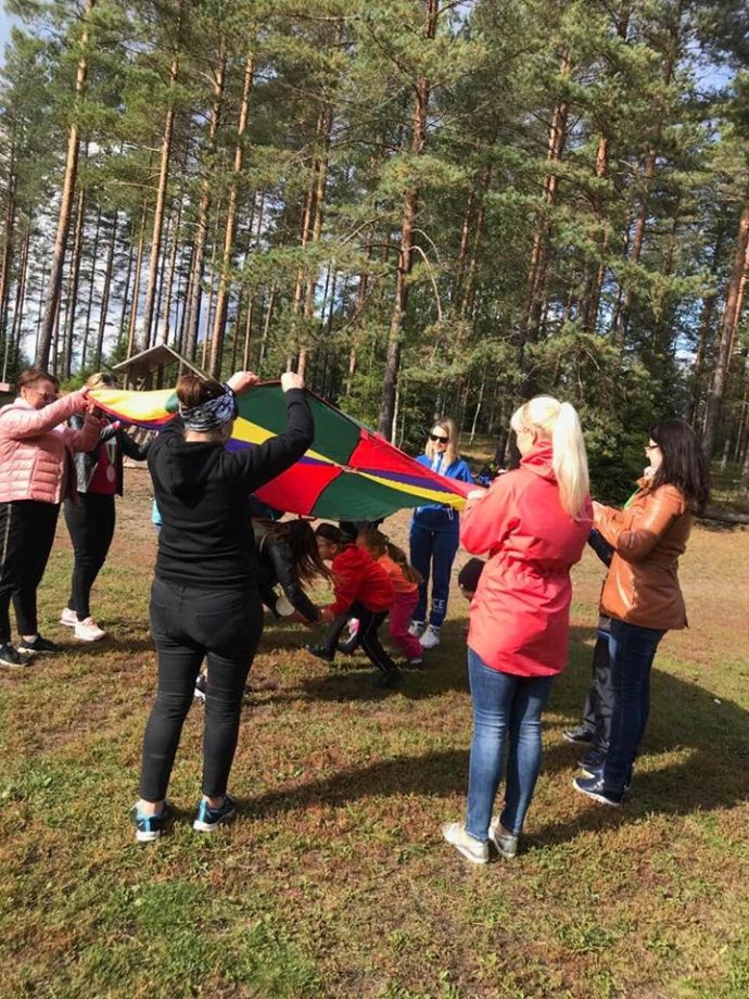 В субботу, 14 сентября, учителя, дети и родители из группы "Ромашки" отправились на запланированный поход на природу в Паньярве. Как только мы приехали на природу, нас радостно встретило солнышко и согревало нас на протяжении нашего мероприятия в этом чудесном местечке. На свежем воздухе вместе с родителями дети исполнили песню о дружбе. Родителям были вручены медали с заданиями. Суть каждого задания заключалось в том, что каждый из родителей должен был выступить в роли ведущего различных эстафет. Последняя игра завершилась разгадыванием загадки и поиском клада. Им оказалась вкусняшка для детей. Завершилось мероприятие походом в кафе.