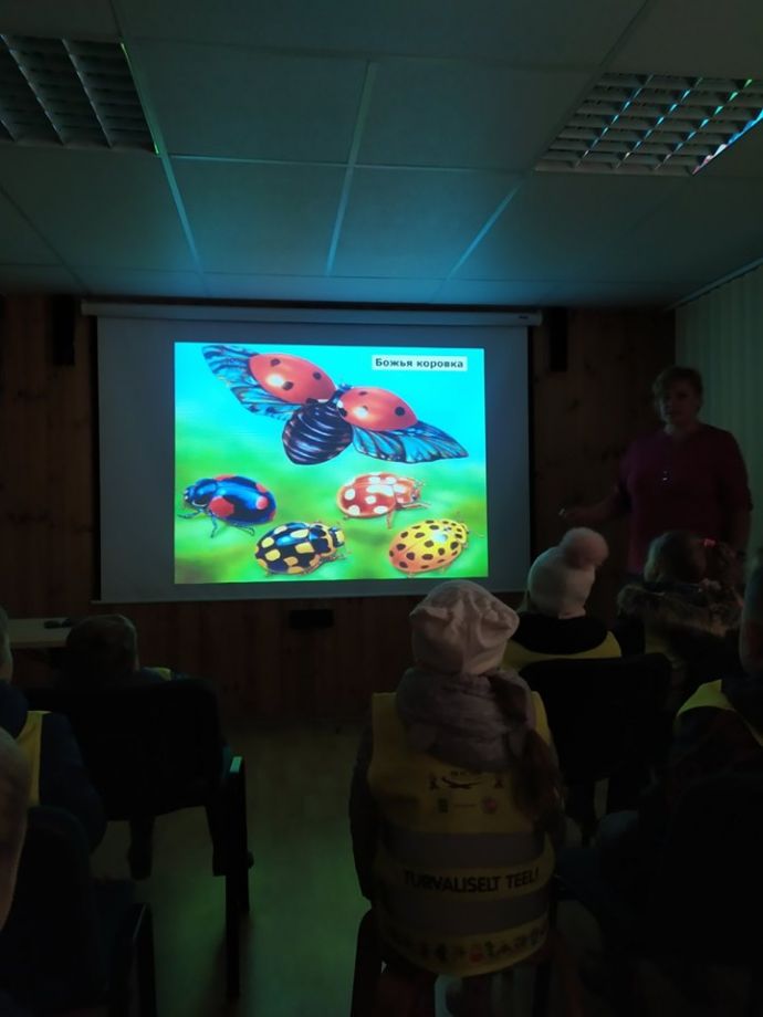 8 октября дети групп Колобок и Подсолнух вместе с учителями и помощниками учителей посетили учебный центр Каукси и приняли участие в учебной программе "Путешествие в лес насекомых". Дети посмотрели презентацию и фильм о жизни насекомых. Наша гид Светлана Сухомятникова провела нас по учебной тропе и показала много всего интересного для детей. Мы узнали, почему на кленовых листьях много черных точек. Оказывается эти пятнышки, как индикатор, показывают, что в этом месте очень чистый воздух. Также мы нашли необычные лишайники (огромная зеленая борода), которые тоже говорят о чистоте воздуха. Все насекомые имеют 6 лапок, а паук (у него 8 лапок) - это хищник с острым зрением. Дети много узнали и увидели, не причинив никому вреда.