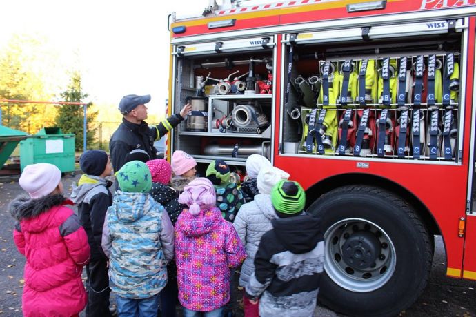 16 октября наш детский сад посетили спасатели. Детям рассказали о работе спасателей, о том, что в доме может быть опасным и как реагировать на пожар. Показали и рассказали какие функции выполняет пожарная машина. Дети подержали в руках инструменты и узнали, чем можно вскрывать обшивку автомобилей при аварии. Примерили на себя защитный шлем, который обеспечивает защиту головы и лица. Дети остались в восторге. Ребятам подарили разукрашки, над которыми они с радостью поработали. Спасибо всем, кто организовал такую интересную и познавательную встречу!