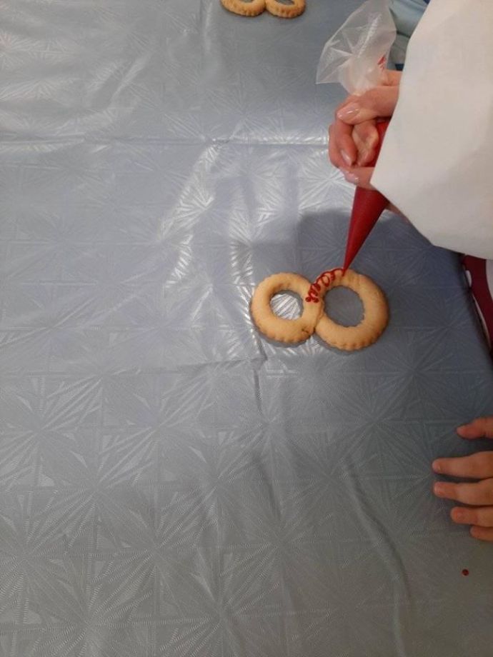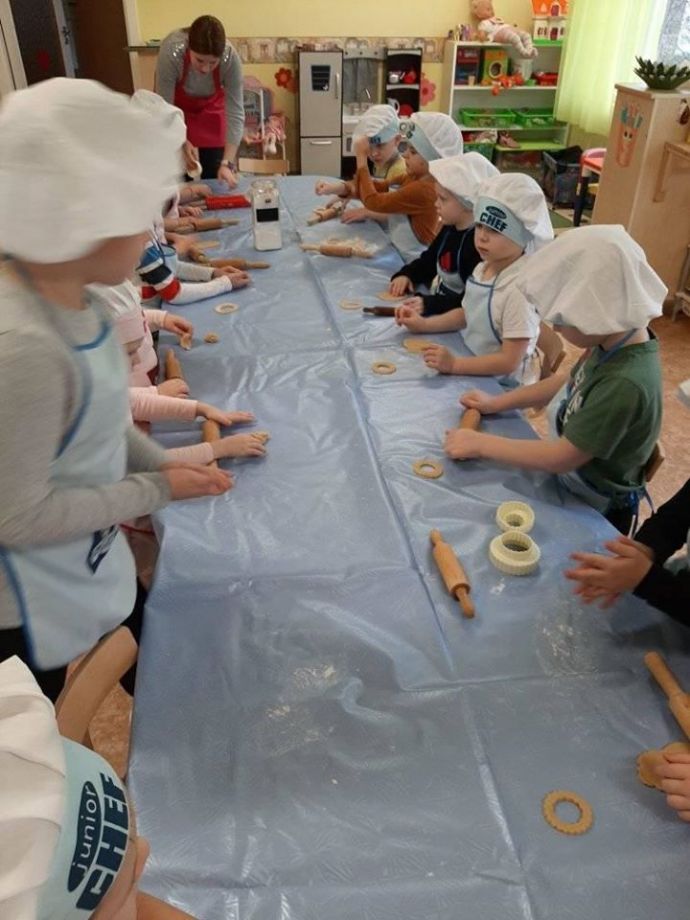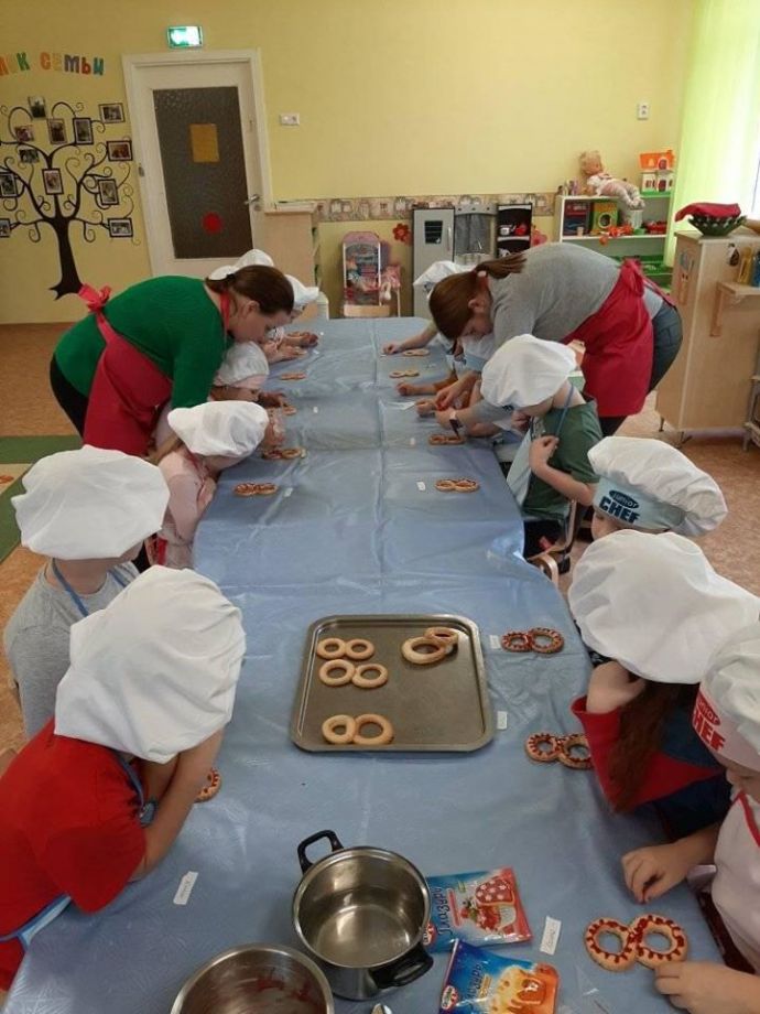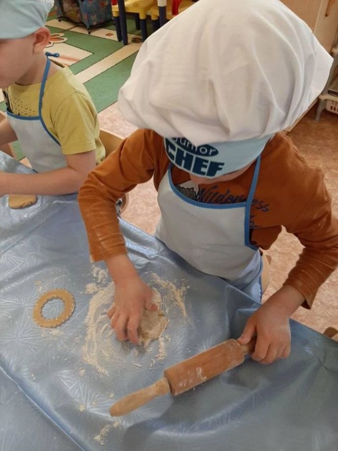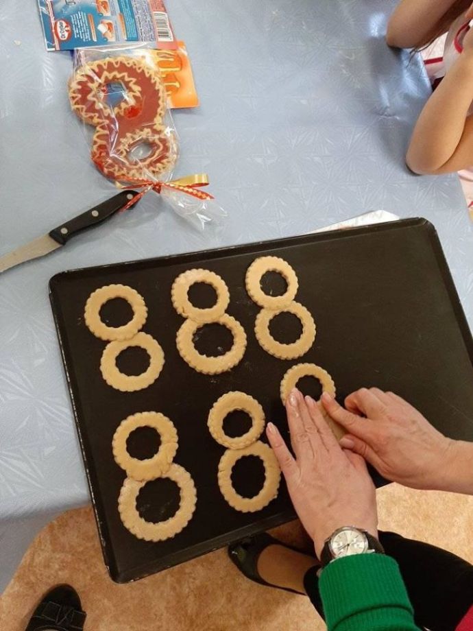 Порадовали своих любимых мамочек "вкусным" подарком детки из группы "Ромашка". На глазах кусочек медового теста превратился во вкусный пряник. Папы тоже не остались в стороне и приложили свою сильную руку к подарку. С красивыми словами, вкусным пряником и букетом, символизирующим любовь к маме, поздравили своих мам накануне женского дня. С женским днем дорогие наши женщины!