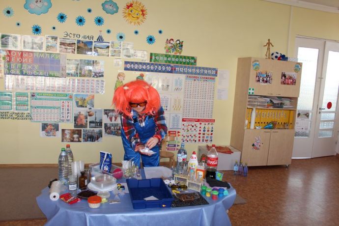 Веснушка и ее помощники в гостях в группе "Звездочка" со своей лабораторией.