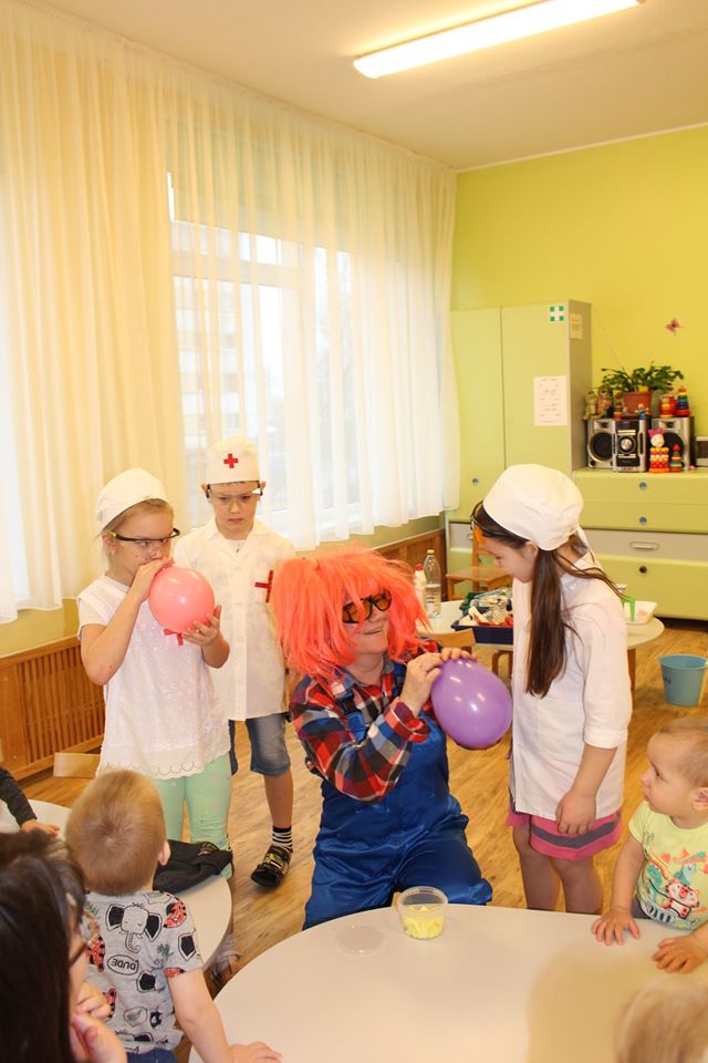 Веснушка и ее помощники в гостях в группе "Лучики" со своей лабораторией.