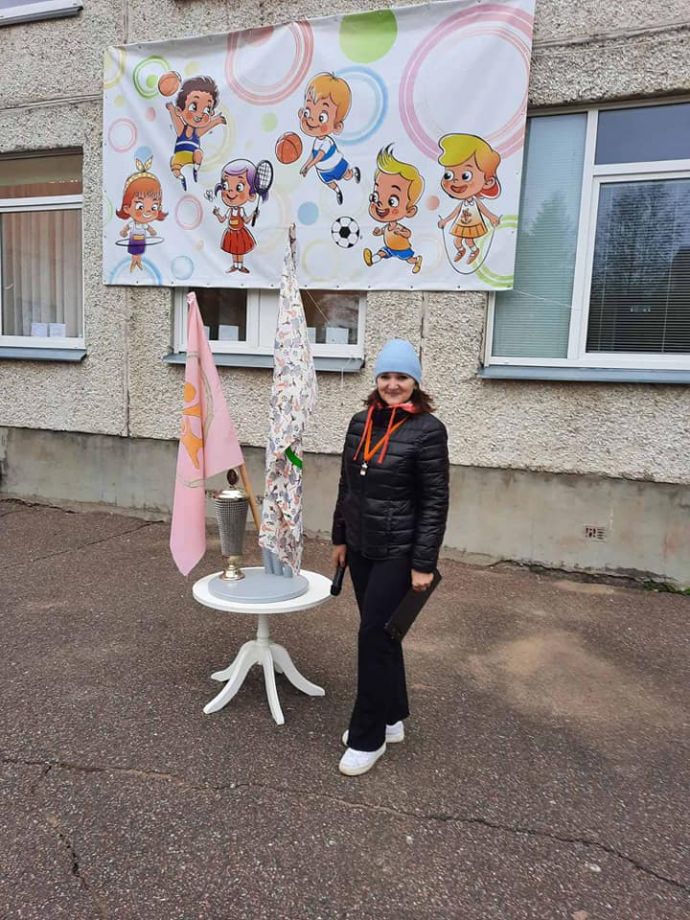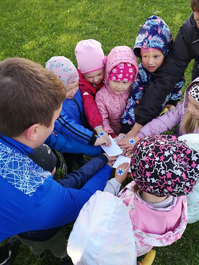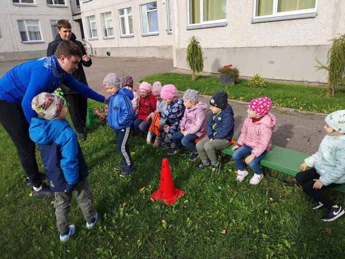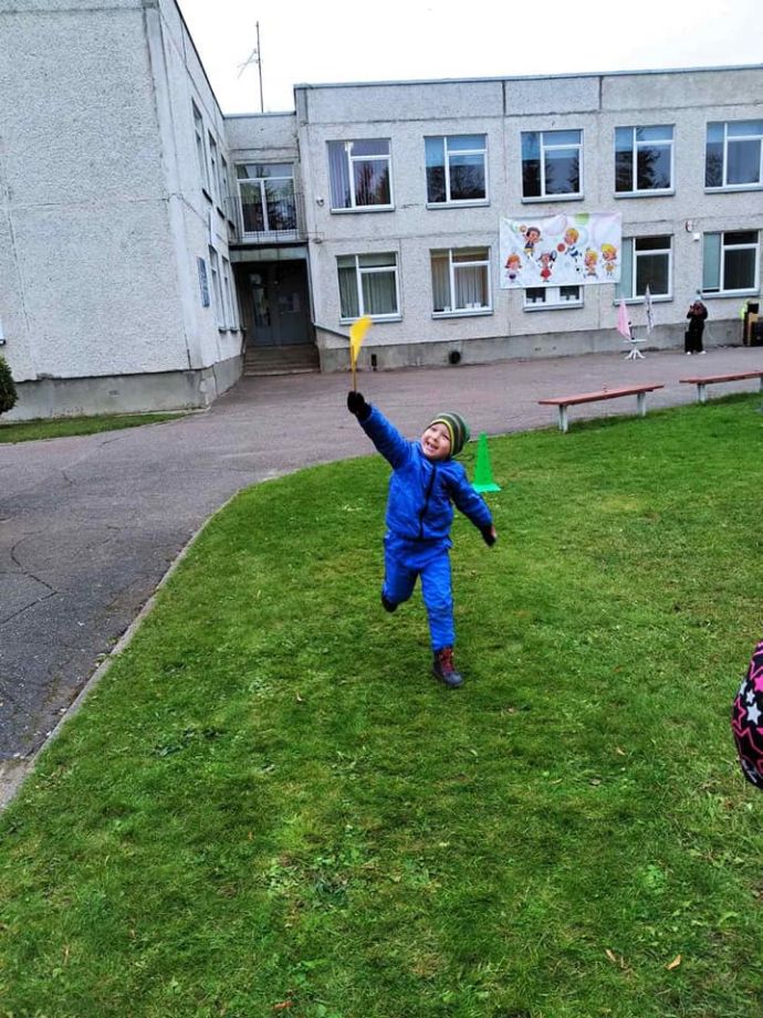 Lapsed alustasid päeva hommikuvõimlemisega ja siis edasi iga rühm läks oma märgitud platsile, kus toimusid lõbusad teatejooksud: