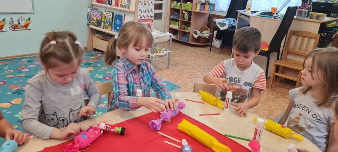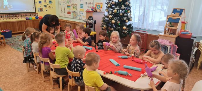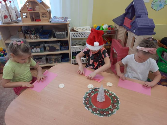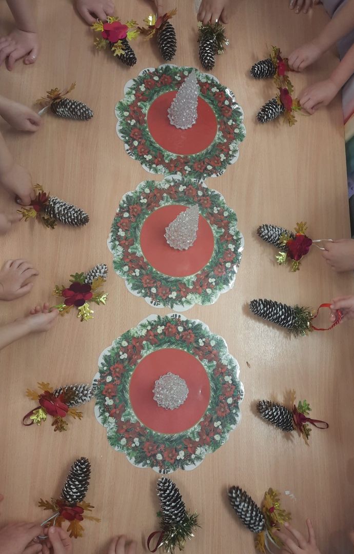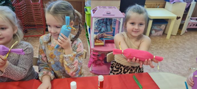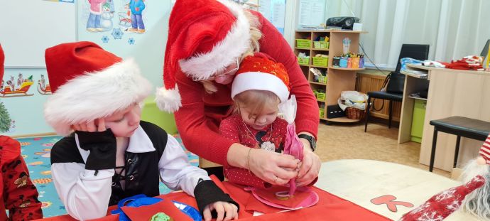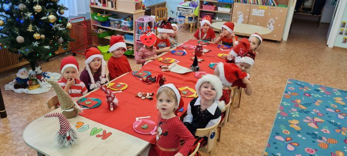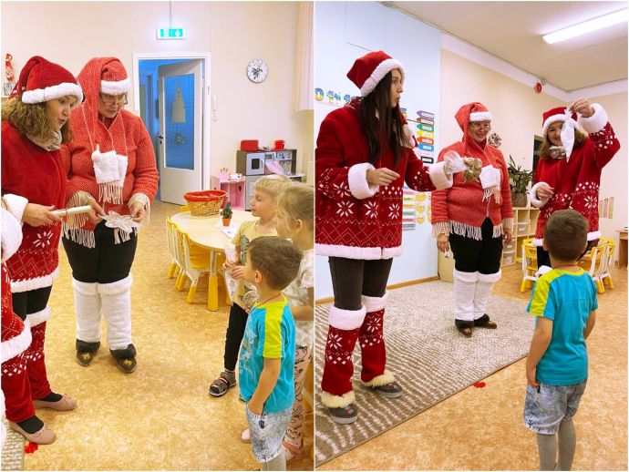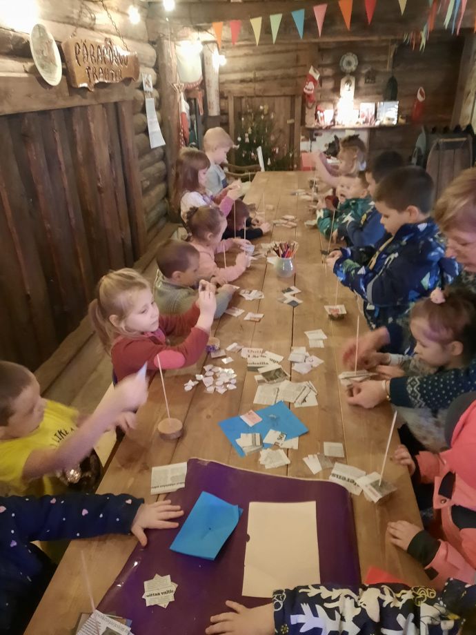 Kõht täis ja siis said lapsed meisterdada endale väikest ja omapärast jõulupuud, mille nad ka kaasa võtsid. Õpetajad samal ajal valmistasid puuhalast päkapikku.