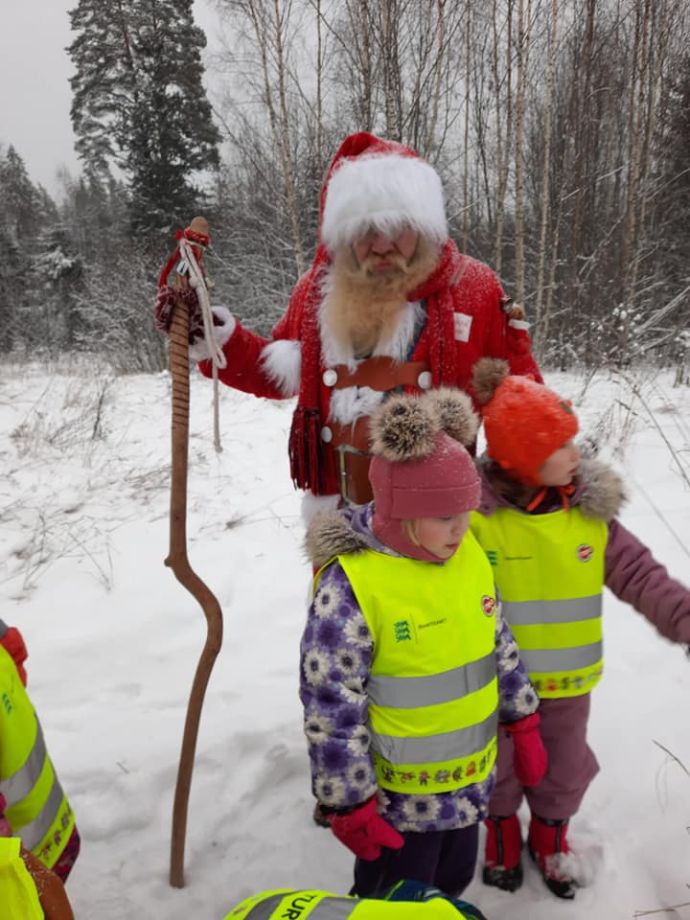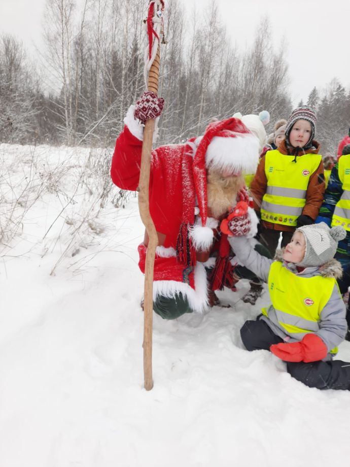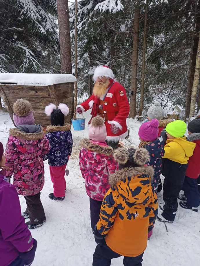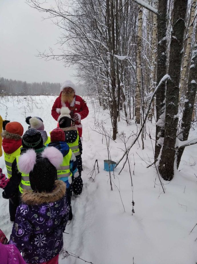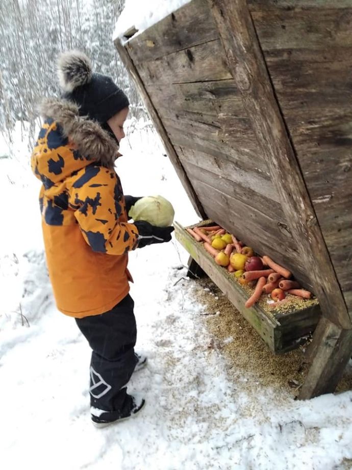 Kohale jõudes ootas meid Jõuluvana Valdemar ise. Rääkisime juttu ja läksime metsa loomadele toitu viima. Lapsed võtsid ise kaasa porgandeid, kapsast, õunu, et saaks meie metsa sõpradele natukene söödavat anda.