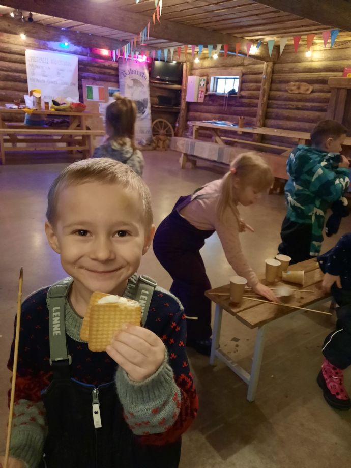 Toit pandud ja suundusime tagasi Jõuluvana residentsi. Lapsed said ise grillida endale vinkusid ja vahukomme. Jõuluvana pakkus ka kuuma kakaod ja morssi.