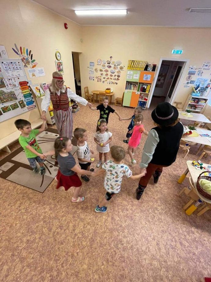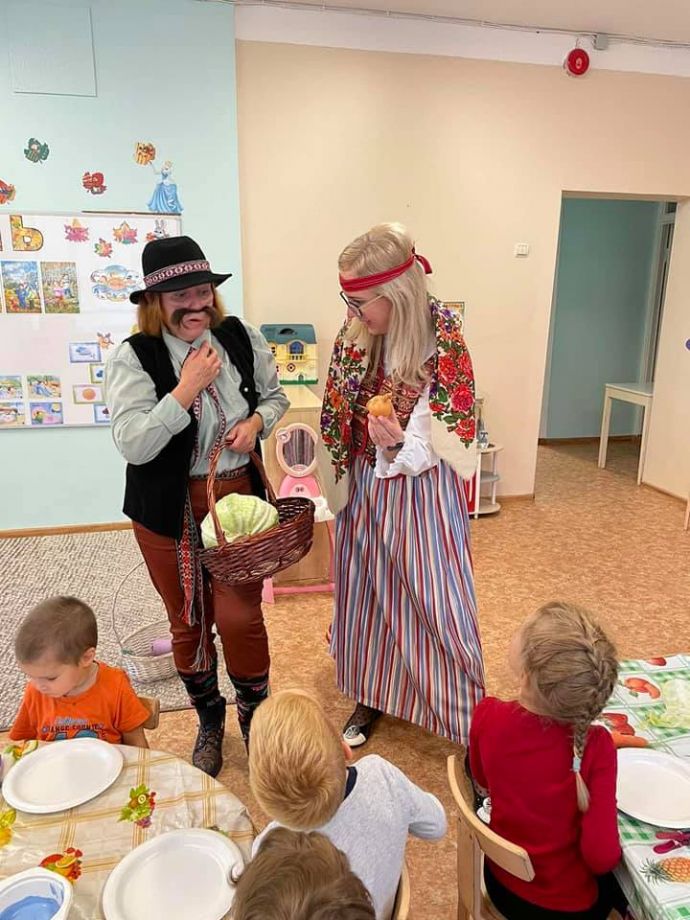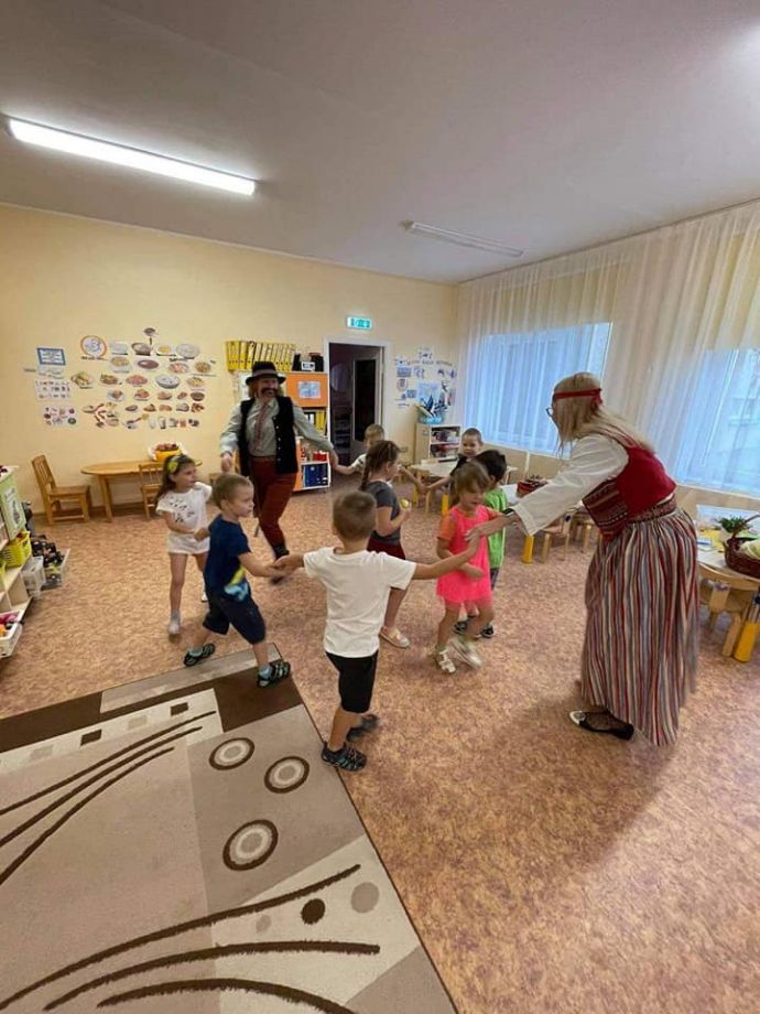 Mihkel ja Linda käisid rühmades lastega lõbusaid mänge mängimas.