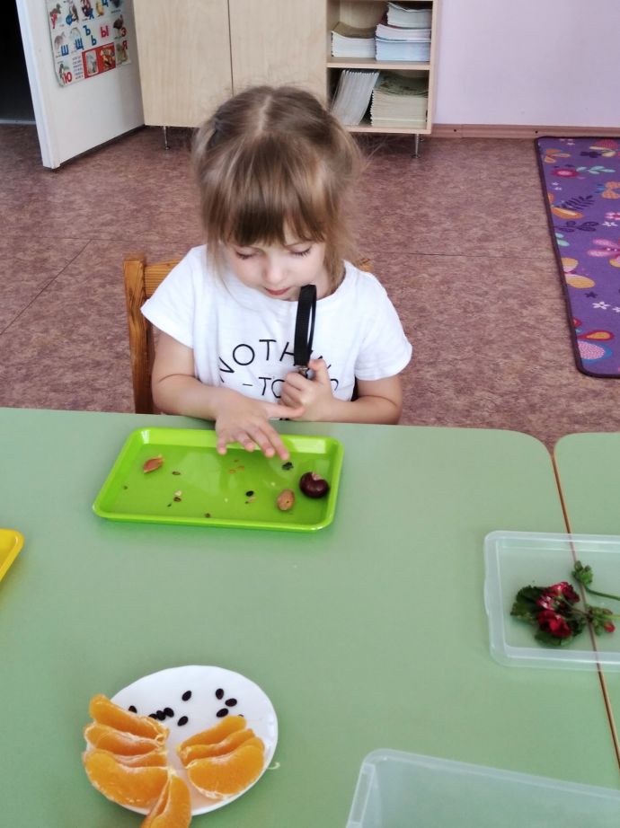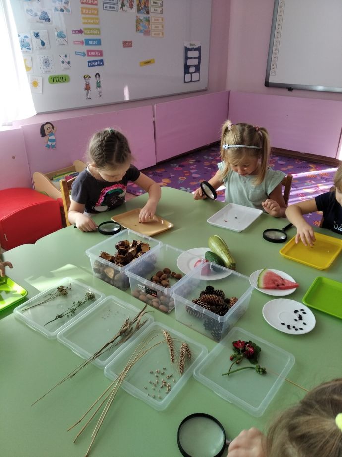 Rühma "Päikene" lapsed olid taas teadlaste rollis ja ja seekord olid "Viljade ja seemnete maailmas". Lapsed laiendasid oma teadmisi seemnete ja viljade mitmekesisusest, võrdlesid erinevate taimede seemneid.