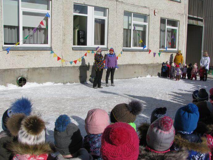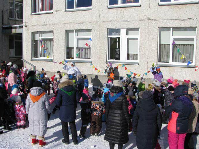 С веселыми закличками, частушками и танцами встречали сегодня, 06.03.2019, Масленицу. Создать атмосферу гуляния помогли несложные аксессуары: расписные платки и хорошее настроение детей и взрослых. К нам на Масленицу заглянули Зима, красавица Весна, веселые скоморохи и Емеля на печке, который в конце праздника угостил детей горячими блинами и чаем. Было очень весело, солнечно и по-зимнему морозно. Кульминацией праздника стало долгожданное сжигание чучела Масленицы — символа ухода зимы и наступления весны. Зимушку проводили, Весну встретили, значит, тепла ждать осталось совсем недолго!