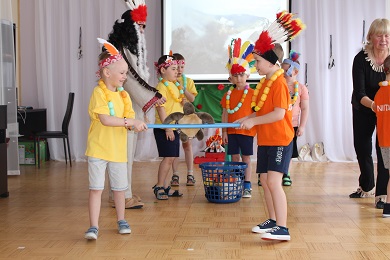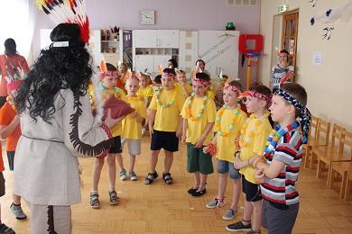 10 апреля 2019 года, дети подготовительных групп были приглашены на ежегодное спортивное развлечение для мальчиков. На этот раз ребята перевоплотились в индейцев племени Майя и отправились искать вигвам Солнца. С помощью Жаркого Солнца они надеялись вернуть дружбу, мир и покой на свою землю. Дорога в горы на плато состязаний была долгой и трудной. Но ведомое Мудрым Жрецом племя справилось со всеми испытаниями. Великие Духи гор пропустили наших «индейцев» на праздник Солнца. Могущественное Светило подарило им солнечные амулеты дружбы, которые будут помогать народу племени жить в любви и согласии.