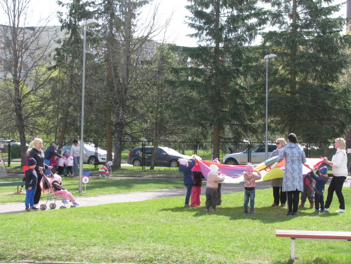 Дети детского сада Tuhkatriinu уже знают, что надо заботиться о своем здоровье, беречь сердечко. Знают они и что надо для этого делать: соблюдать режим дня, хорошо питаться, гулять на свежем воздухе, заниматься физкультурой… Апрельский месяц сердца лишний раз напомнил всем нам об этом! 30 апреля, ребята и взрослые собрались на площадке детского сада, чтобы весело подвигаться под задорную музыку и выполнить различные задания, переходя от этапа к этапу. Участникам были предложены: бег змейкой между предметами, прыжки из обруча в обруч, метание в вертикальную и горизонтальную цели, кольцеброс, упражнения на бревне и игры с парашютом. На площадке царили прекрасное настроение и спортивный дух, а в группах детей ждали витамины: свежие фрукты.